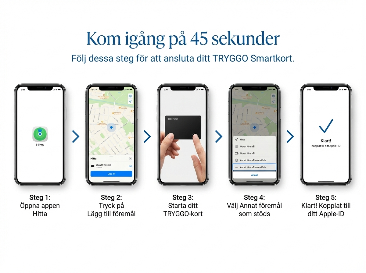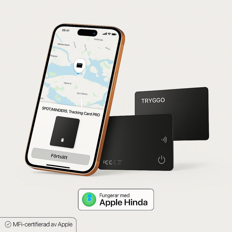 TRYGGO anvĂ€nder inbyggt stöd för Apple Hitta sĂ„ att du kan lokalisera dina föremĂ„l direkt i Hitta-appen â ingen extra programvara krĂ€vs.
